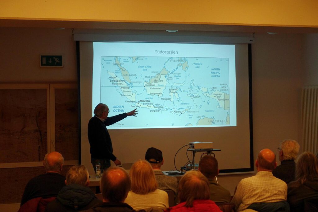 Leider konnte der ursprünglich für den 14. Januar 2026 geplante Vortrag von Claus Kropp aus Lauresham über mittelalterliche Landwirtschaft nicht stattfinden, da der Vortragende uns absagen musste. Da das recht kurzfristig geschah, ist unser Ehren- und Vorstandsmitglied Dr. Robert Böhm eingesprungen und hat den Zuhörern über seine Reise nach Indonesien berichtet.